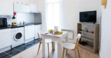 À louer en location saisonnière au Port de Nice : studio meublé tout équipé (canapé convertible, cuisine avec plaques, micro-ondes, réfrigérateur, vaisselle, table, chaises, armoire, TV, Wi-Fi, climatisation mobile, machine à laver, salle d’eau avec douche et WC), situé au 3ᵉ étage sans ascenseur, à deux pas de la mer, des transports et des commerces – idéal pour un séjour confortable à deux.