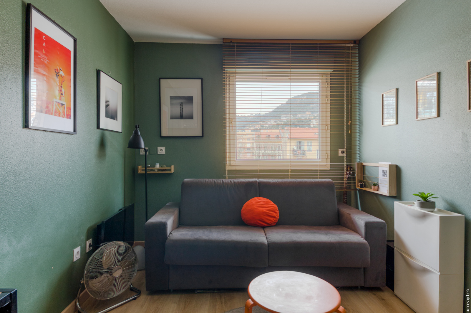 Studio meublé de 17.50m2, situé au 82 rue Barberis, 5eme étage avec ascenseur comprenant : une petite entrée, une pièce de vie avec kitchenette et placard, une salle de douche avec WC.