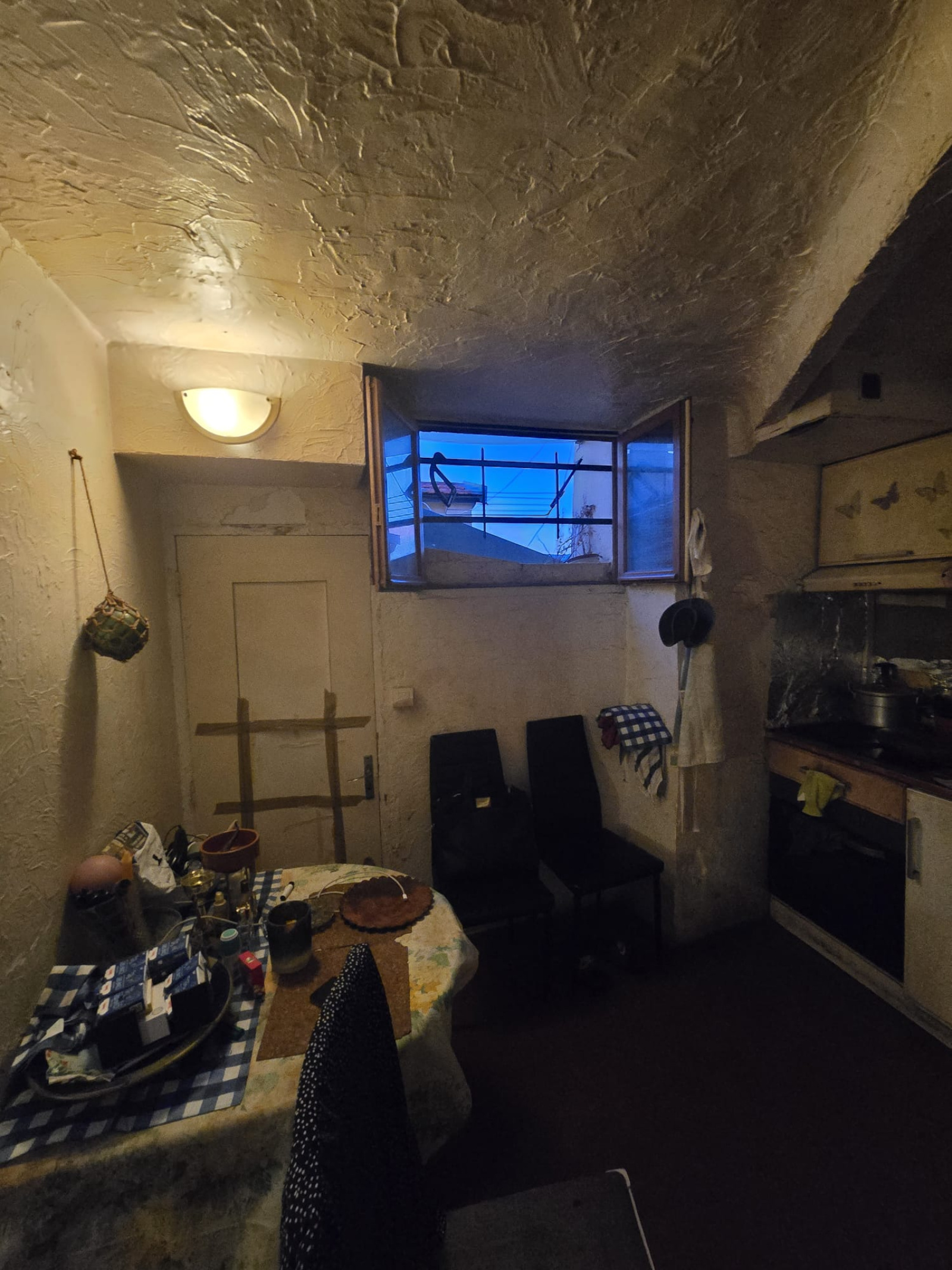 Il comprend une pièce principale avec coin cuisine aménagée, ainsi qu’une salle d’eau avec WC. Le chauffage est assuré par convecteur électrique, l’eau est individuelle.